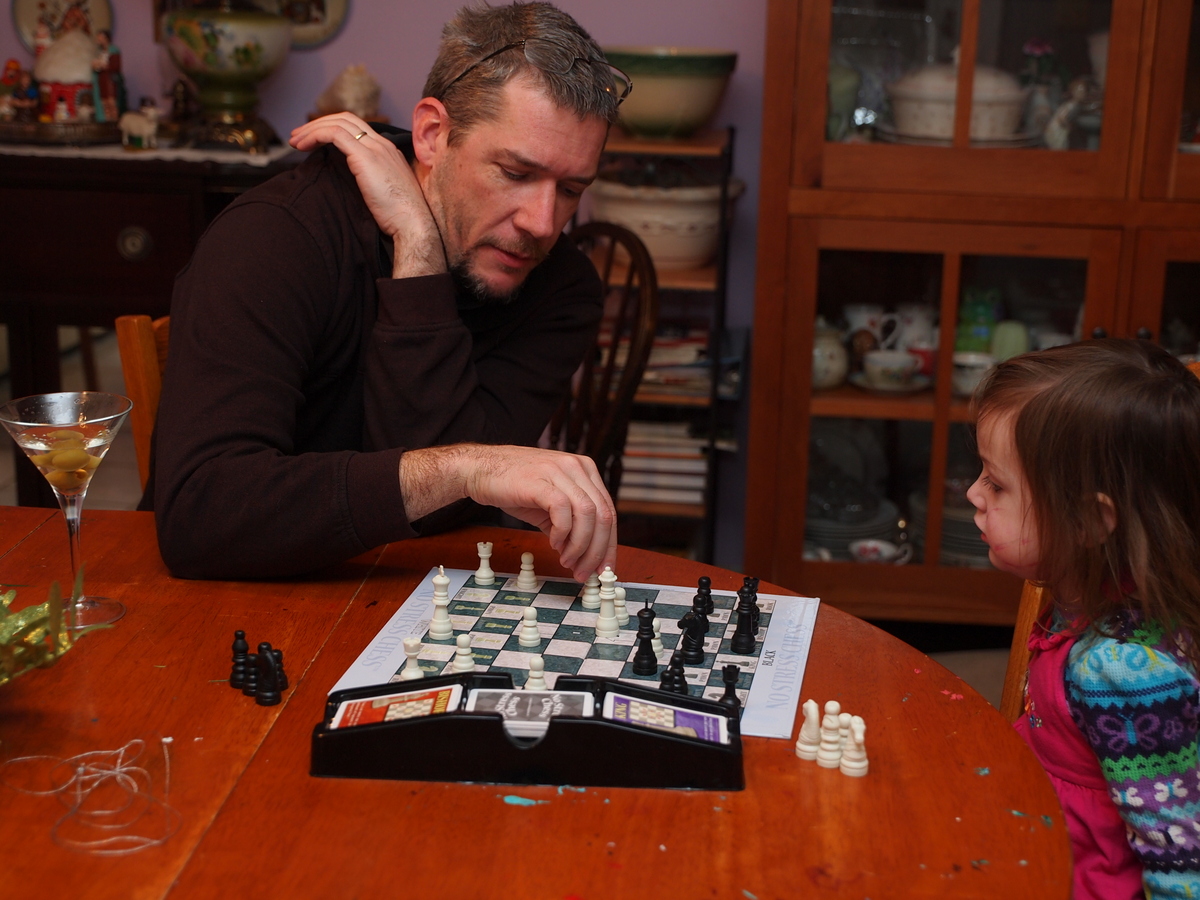 Games People Play on December 17, 2013 Get link Facebook X Pinterest Email Other Apps This evening, Dennis and Stella relaxed with a game of No Stress Chess. Comments